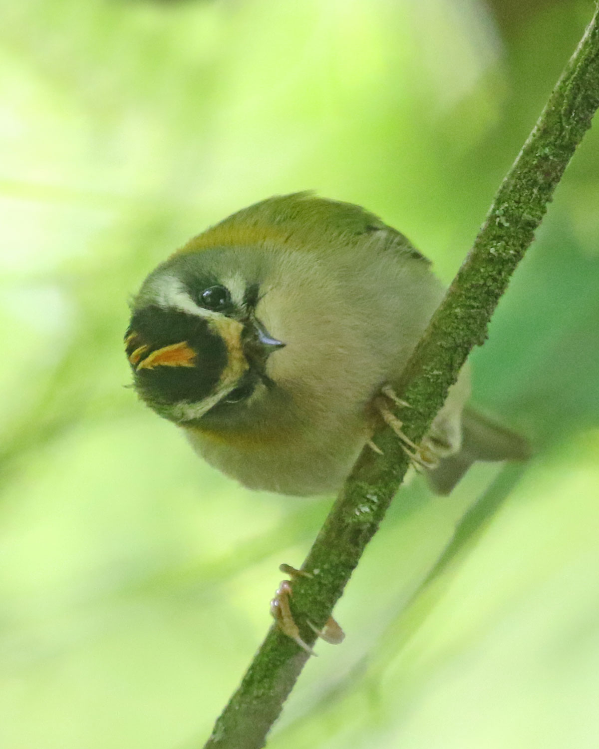 As I turned to leave I heard another Firecrest singing. After a short search i was able to find it in the canopy. I know more Firecrest photographs, but I just can't resist them.